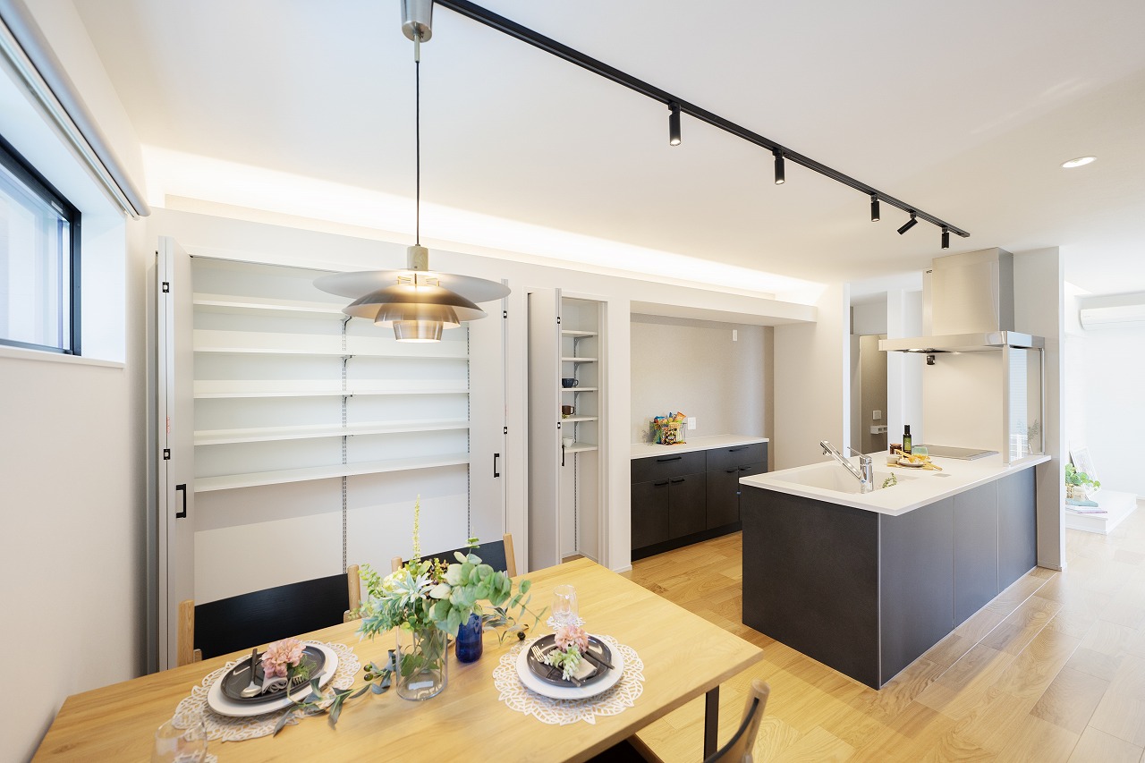 家事動線抜群!キッチン中心の便利な間取り- キッチンがLDKの中心にあることで、ダイニングとリビングどちらにも行き来がしやすい!毎日お料理する方にはうってつけの間取りに!