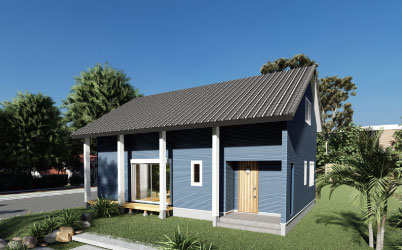 - 北欧の民家をモチーフにした北欧モダンな家。