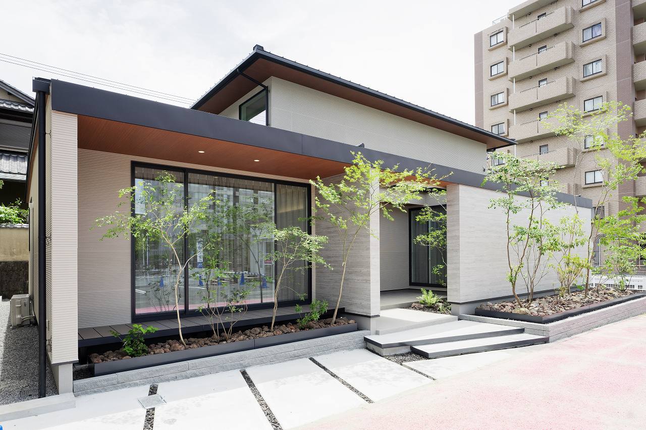 - 玄関前のポーチは、家族が同時に出入りする際もスムーズにでき、ベビーカーや自転車も置けるほどの広さです。その中に植栽スペースがあり、植える種類にもよりますが、春には花が咲き、夏には緑が茂り、秋には紅葉し、冬には実がなるなど、四季折々の風景を楽しむことができます。