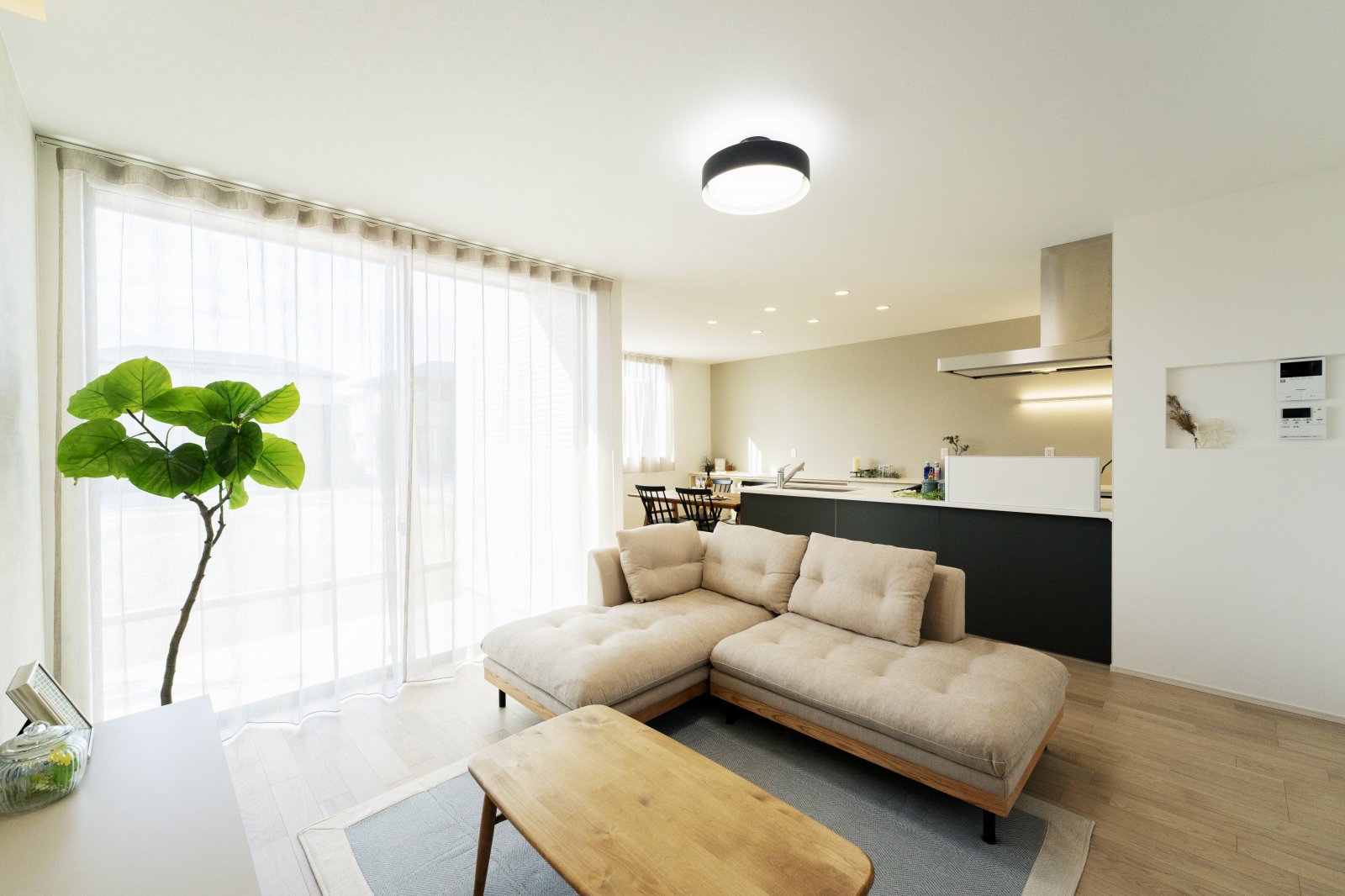 - 【まるで注文住宅!】デザイン照明・カーテン・ダイニングテーブル・ソファ・エアコン付!