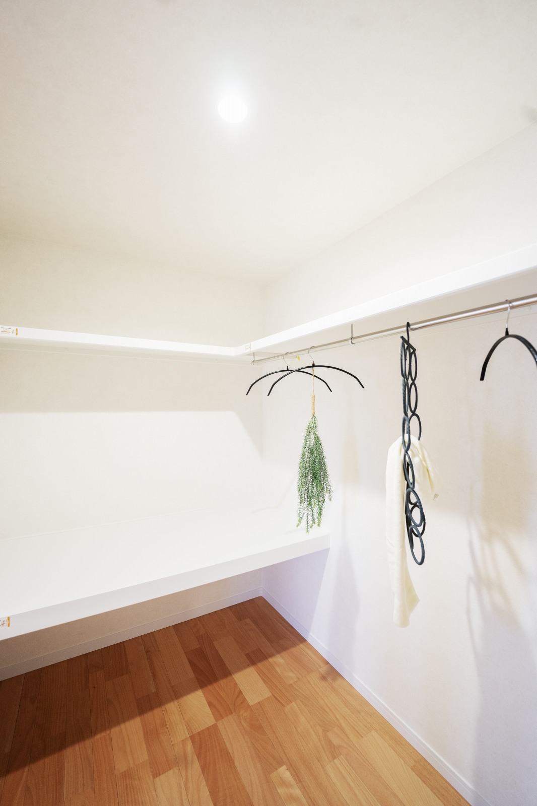 - 1階には2つの収納とシューズクローク、パントリー完備で、物がスッキリ片付き広々空間をキープ!2階にもたっぷりの収納で、生活感を隠してくれます。