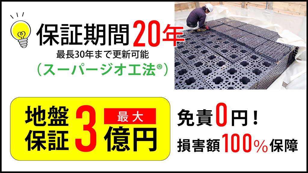 - 【安心保証】建物20年、設備10年、地盤20年、白蟻+定期点検20年