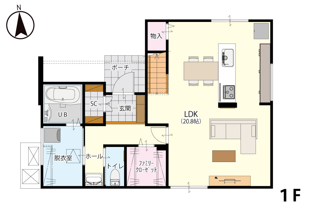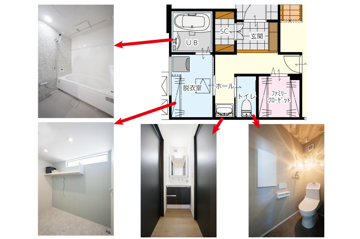 - 玄関近くに収納・水廻りが集中している効率の良い間取りです。