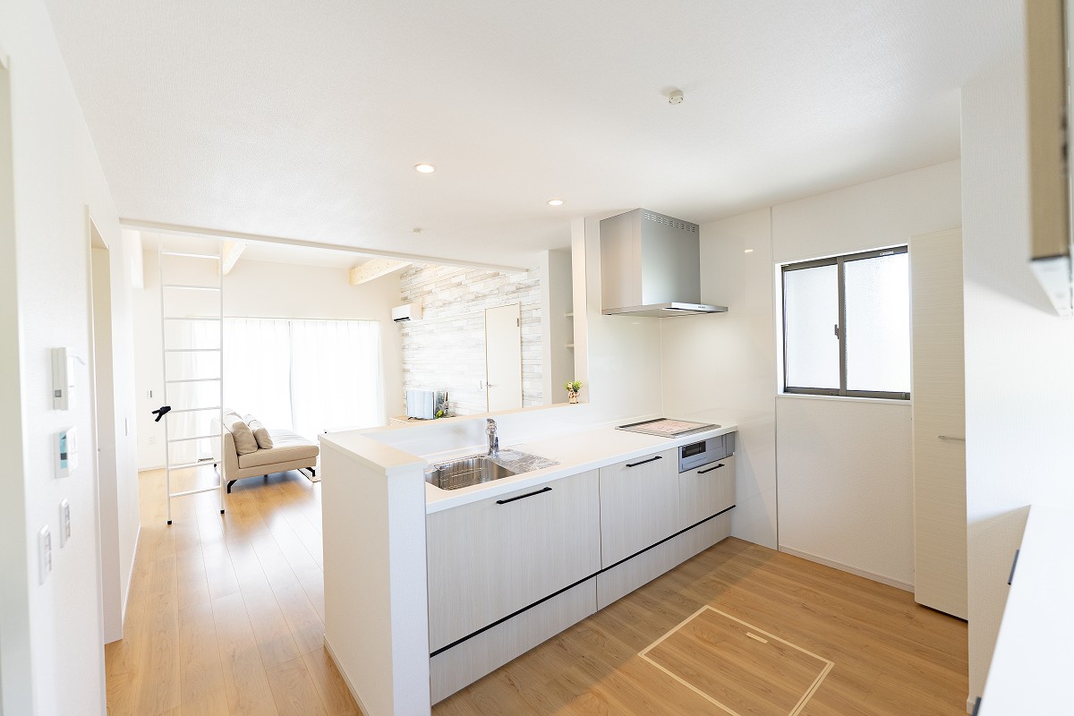 料理をしながらリビングや和室で遊ぶ子供たちの様子を見守れる空間構成は、安全・安心を求める子育て世代にとって非常に魅力的で、家族の一体感をより強くします。
