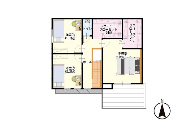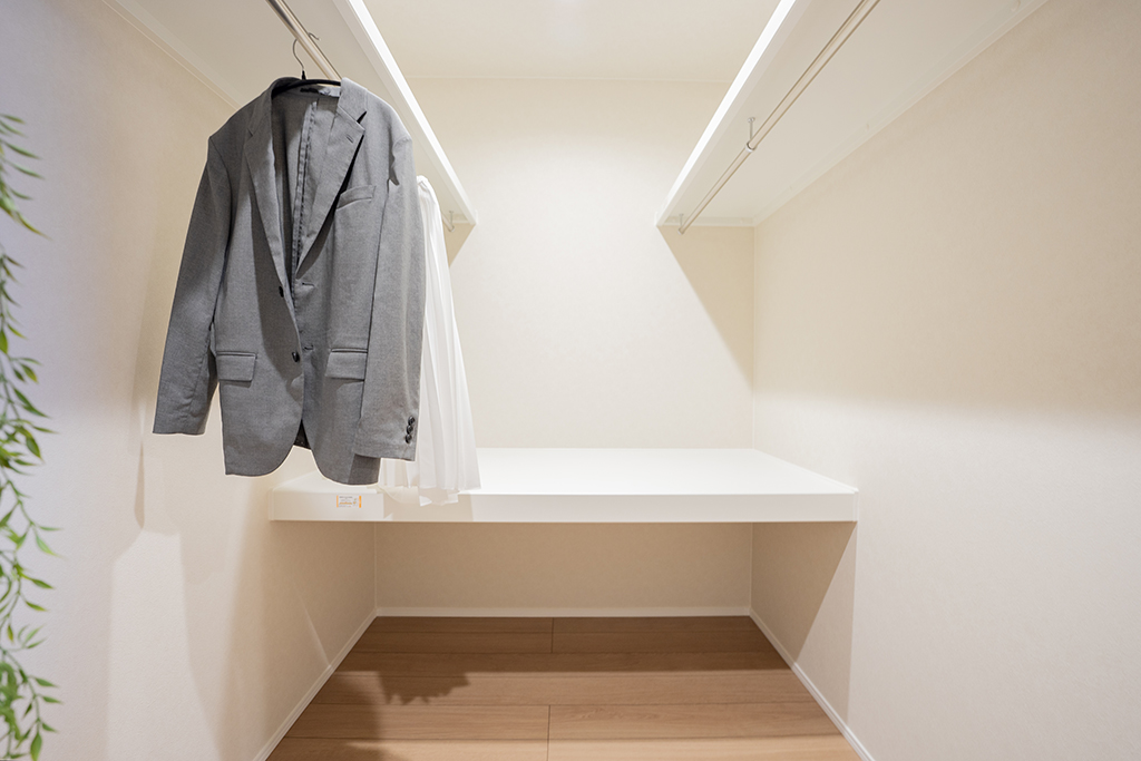 - 「ファミクロ」と「WIC」のW(ダブル)収納完備。 家族の衣類をまとめて管理できるファミリークローゼットと、主寝室の大容量ウォークイン。
