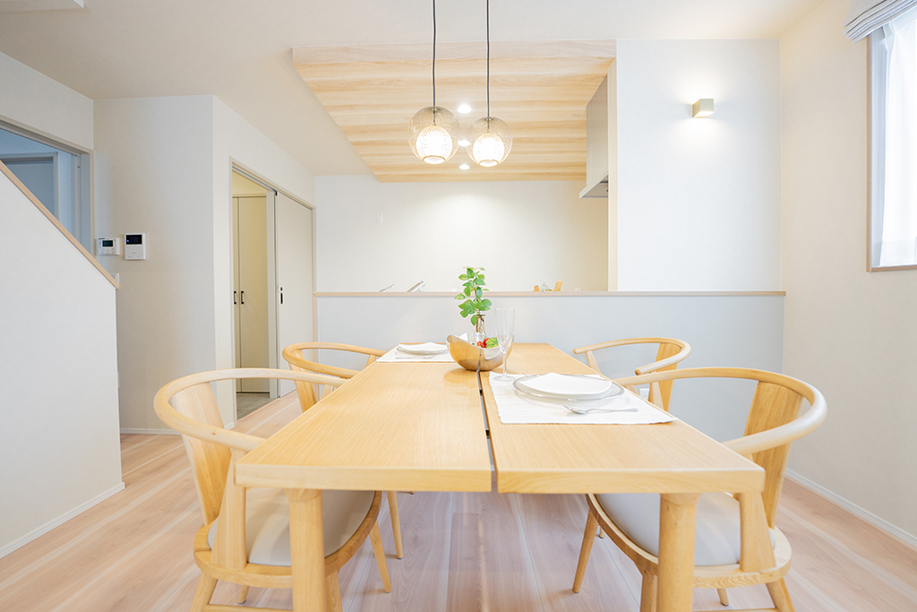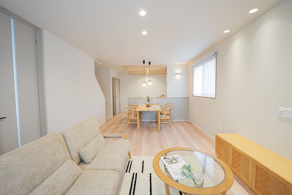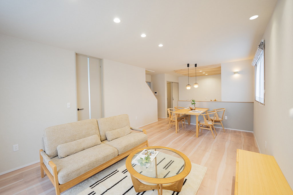 - 温かい木の質感が主役の18.5帖のLDK。忙しい日常にほっと一息つける癒しの時間をもたらします。