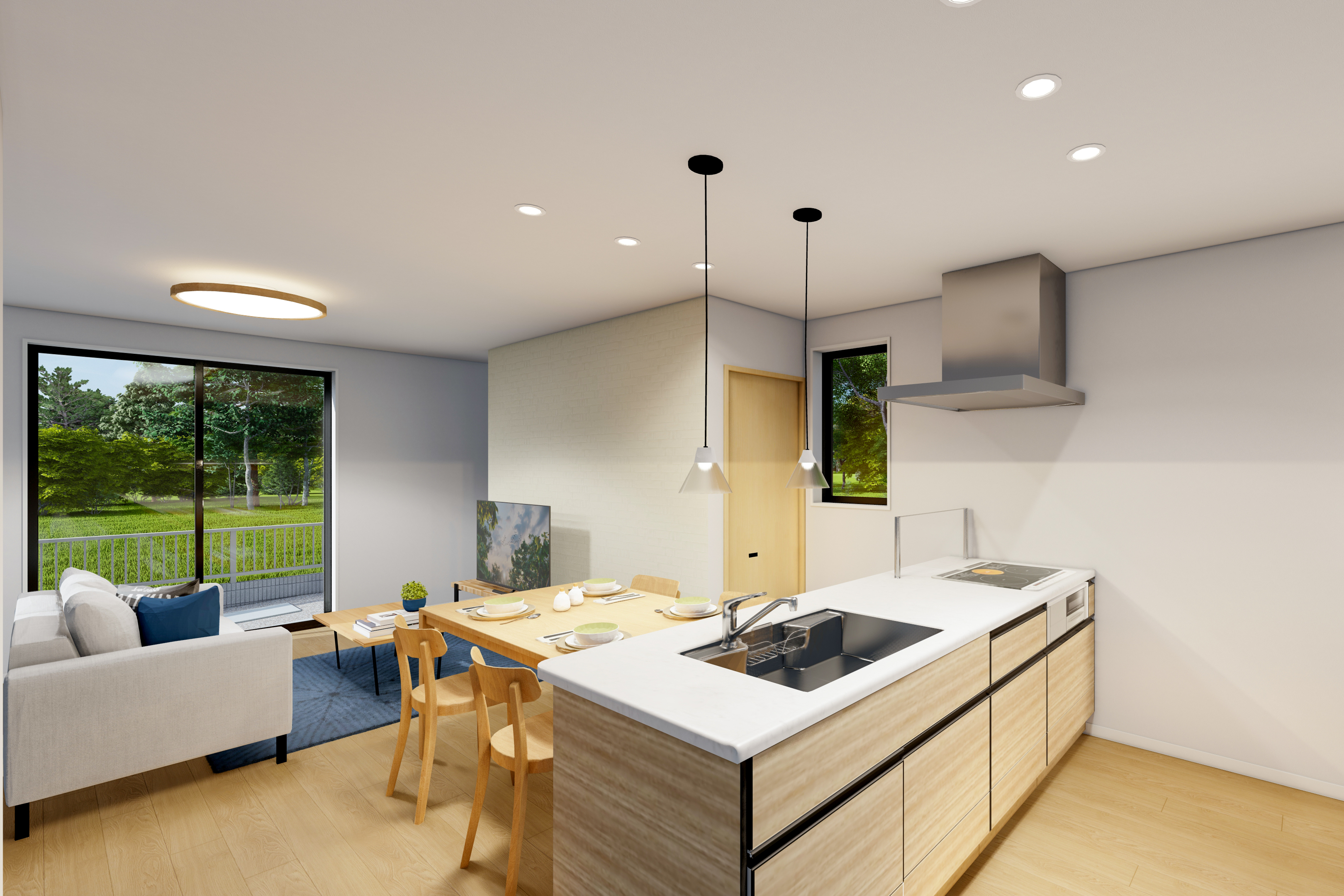 - 【まるで注文住宅!】デザイン照明・カーテン・ダイニングテーブル・ソファ・エアコン付!