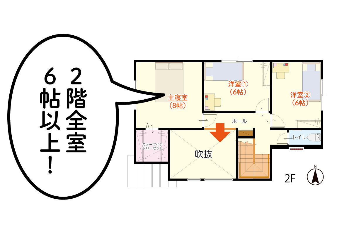 - 【 主寝室(8帖)+洋室(6帖)×2】