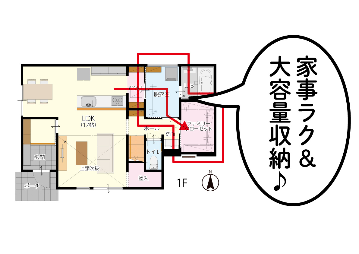 キッチンから脱衣室・ファミリークローゼットまで数歩!