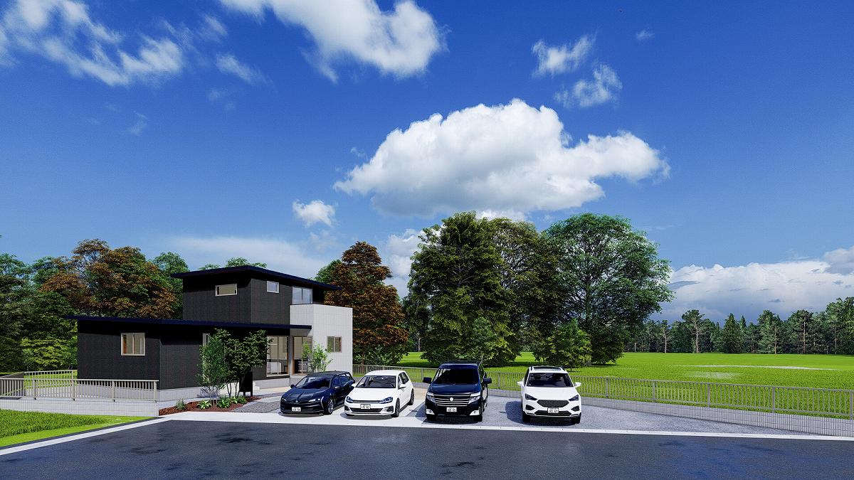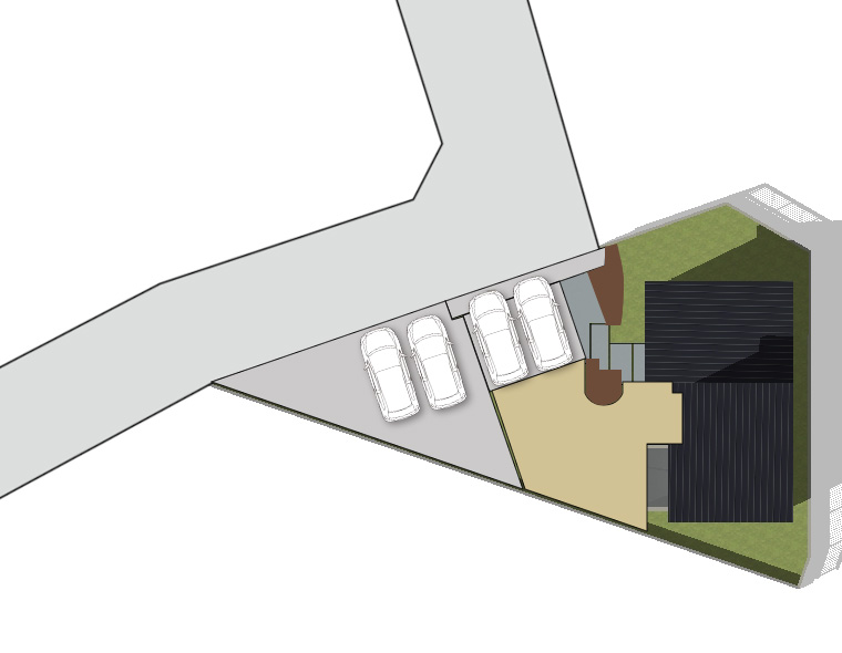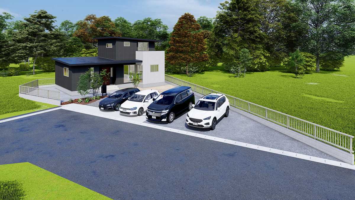 - 駐車スペースは4台並列可能!お友達が多いご家族や、2世帯での暮らし、お子様が成長しても安心のゆったりとした広い敷地です。