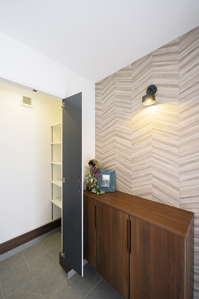 リビングを通らずに荷物を運べる快適動線。