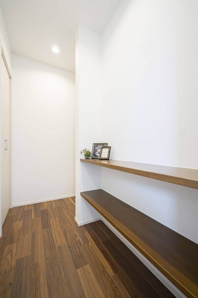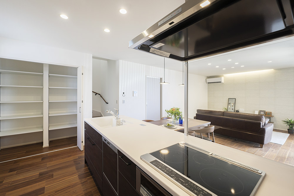 玄関→リビング→キッチン→玄関- 買物帰りで荷物が多い時などは、玄関からそのままキッチンへ。