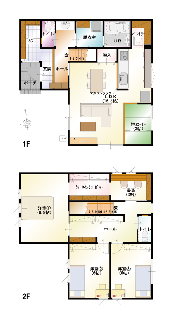 隣には赤ちゃんのお世話やアイロンがけ、お子様の遊び場や休憩スペースなど様々な場面で活用できる約3帖のタタミコーナー。