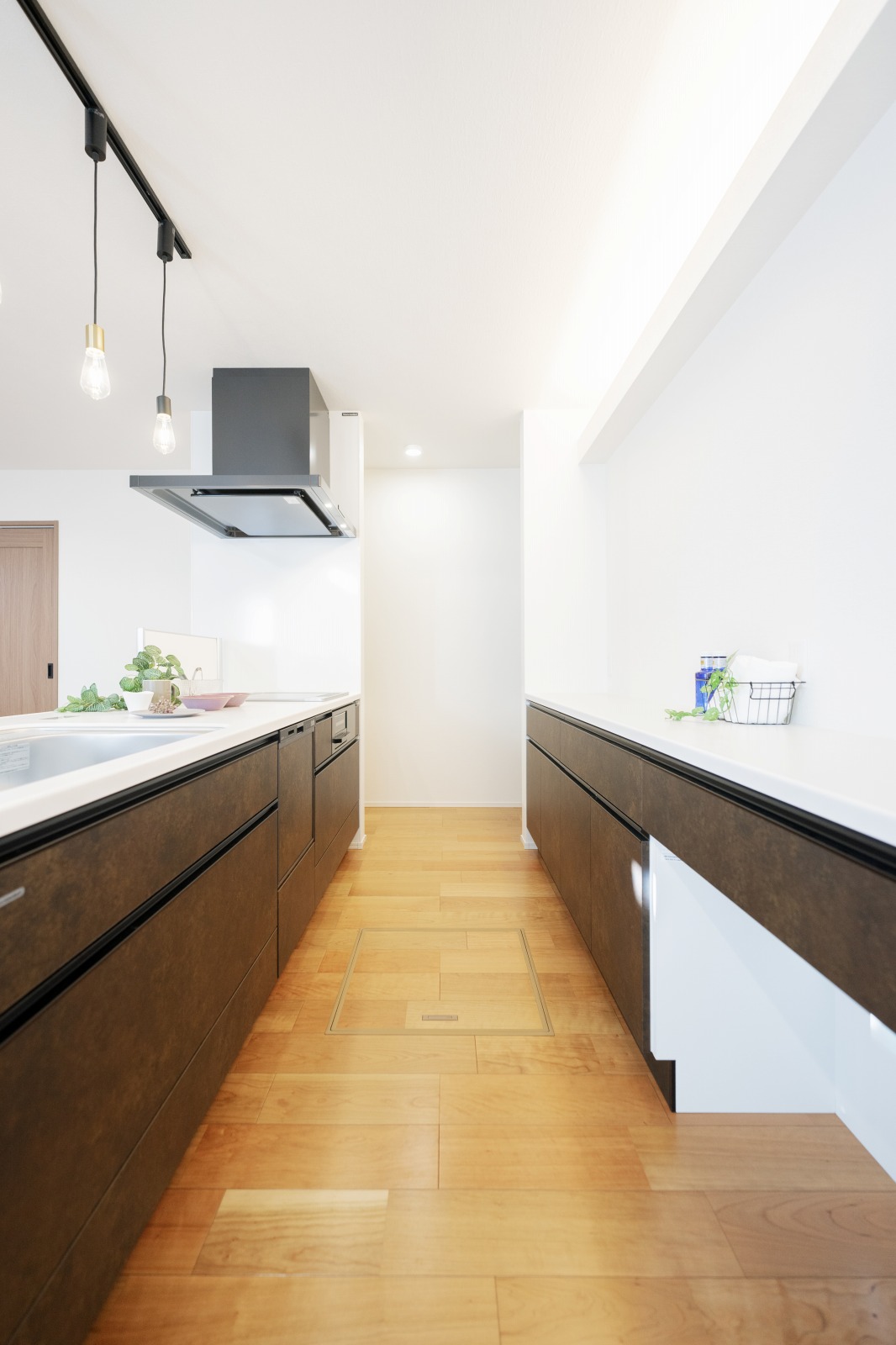 便利なレイアウトで、家事もとってもスムーズに。- リビングのとなりに家事室(ユーティリティ)。脱衣室と隣り合わせで、ランドリールームのような使い方もできます。