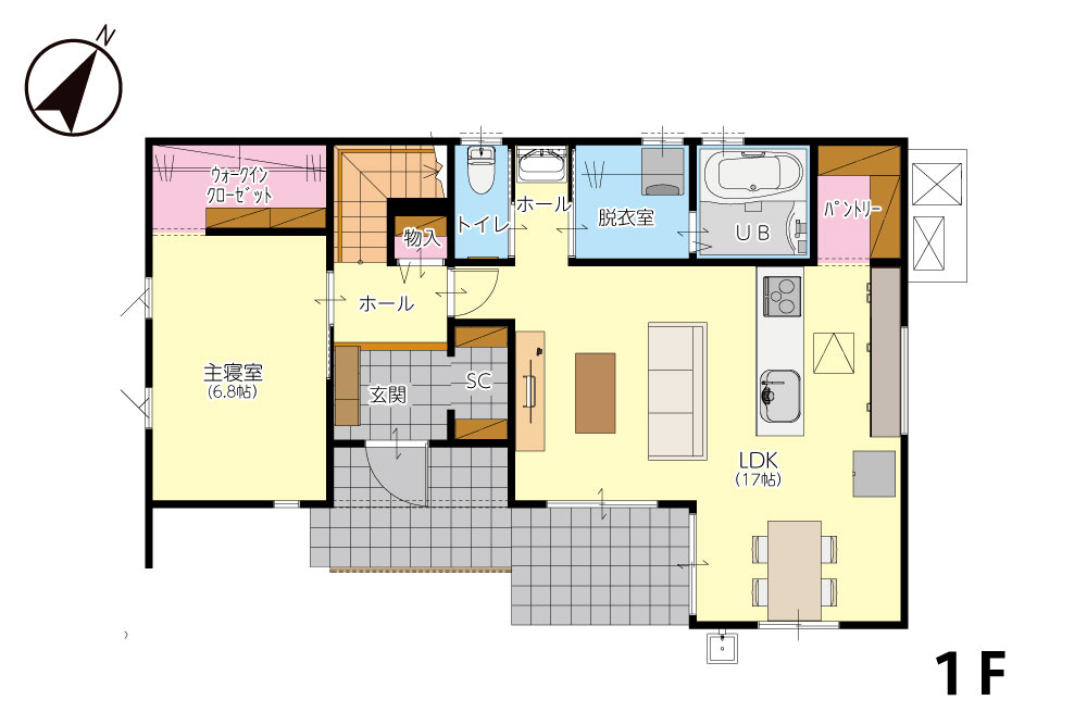 1階に寝室!平屋+αの間取りの魅力- 玄関のすぐ近くに主寝室。朝、出発するときも、帰ってきてからも移動距離が短くて便利!階段を使わない、1階中心の生活ができるので、将来も安心です。