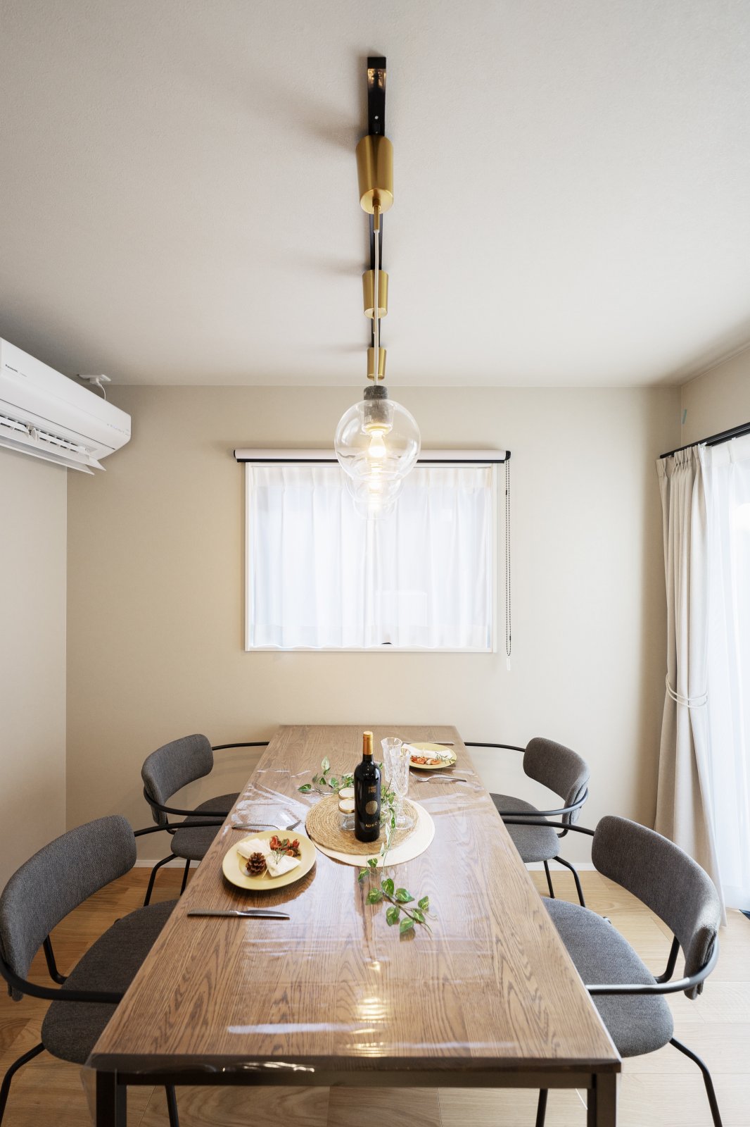 お部屋も心もぽかぽか。窓から差し込む日差しで明るいリビング- 約17帖のLDKは南側に窓付きの開放的な空間です。窓からは、土間テラスにでることができ、季節ごとの景色の移り変わりを楽しめます。