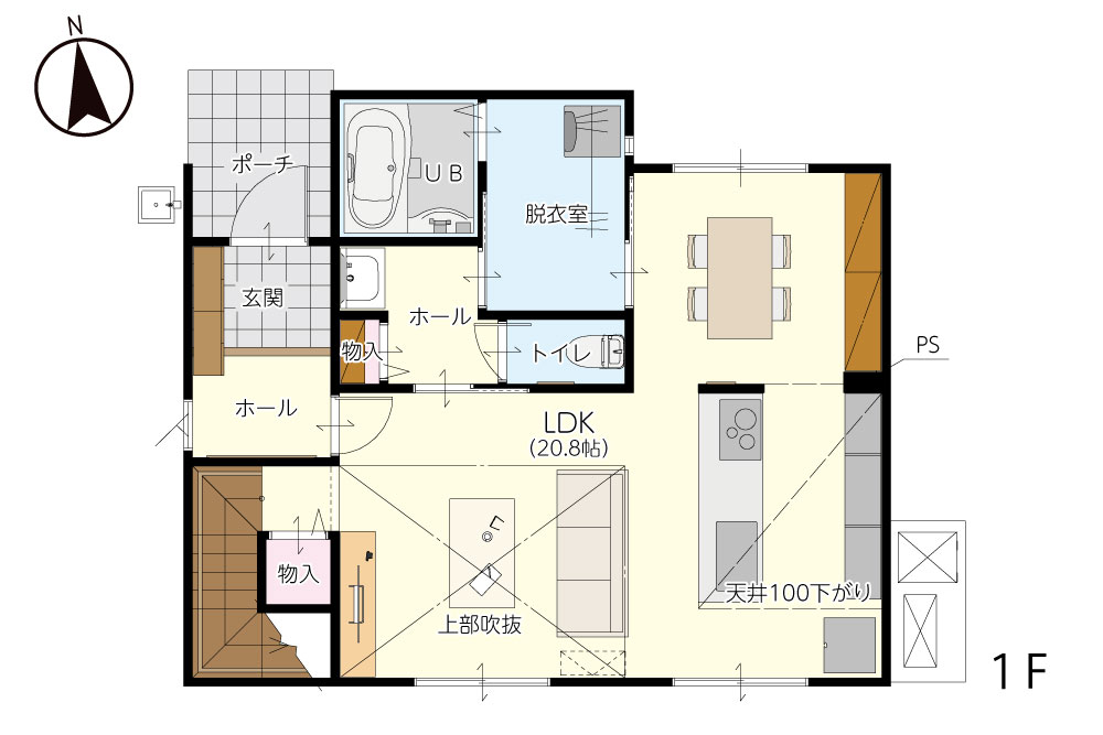 シンプルナチュラルな吹抜けリビング! 100点くつろぎ空間のある家