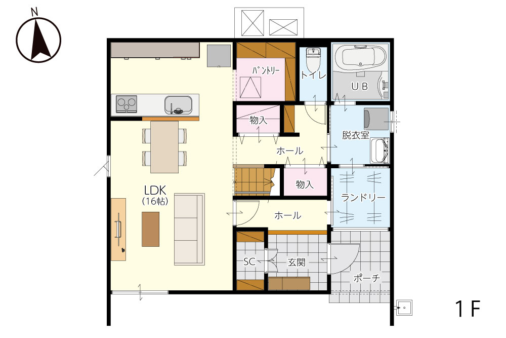 回遊動線- 玄関周りはサクサク移動ができる動線!左右に分かれてグルグル回れるので、家事のときにもとっても便利。