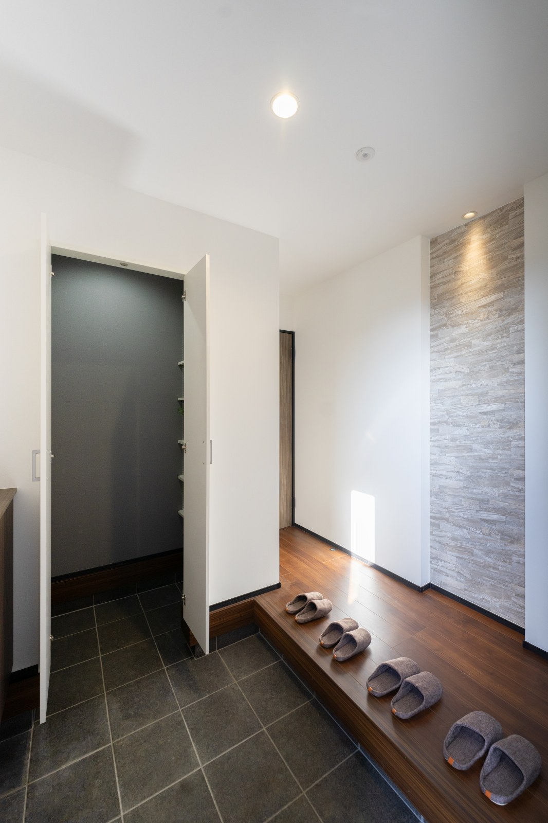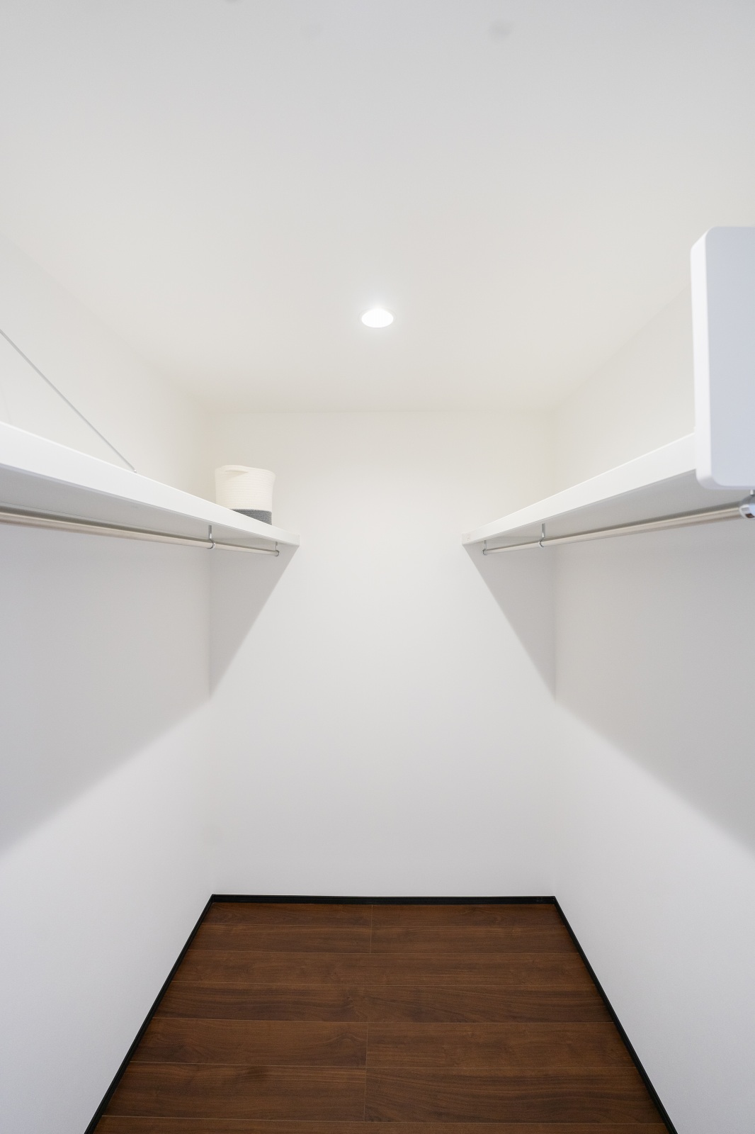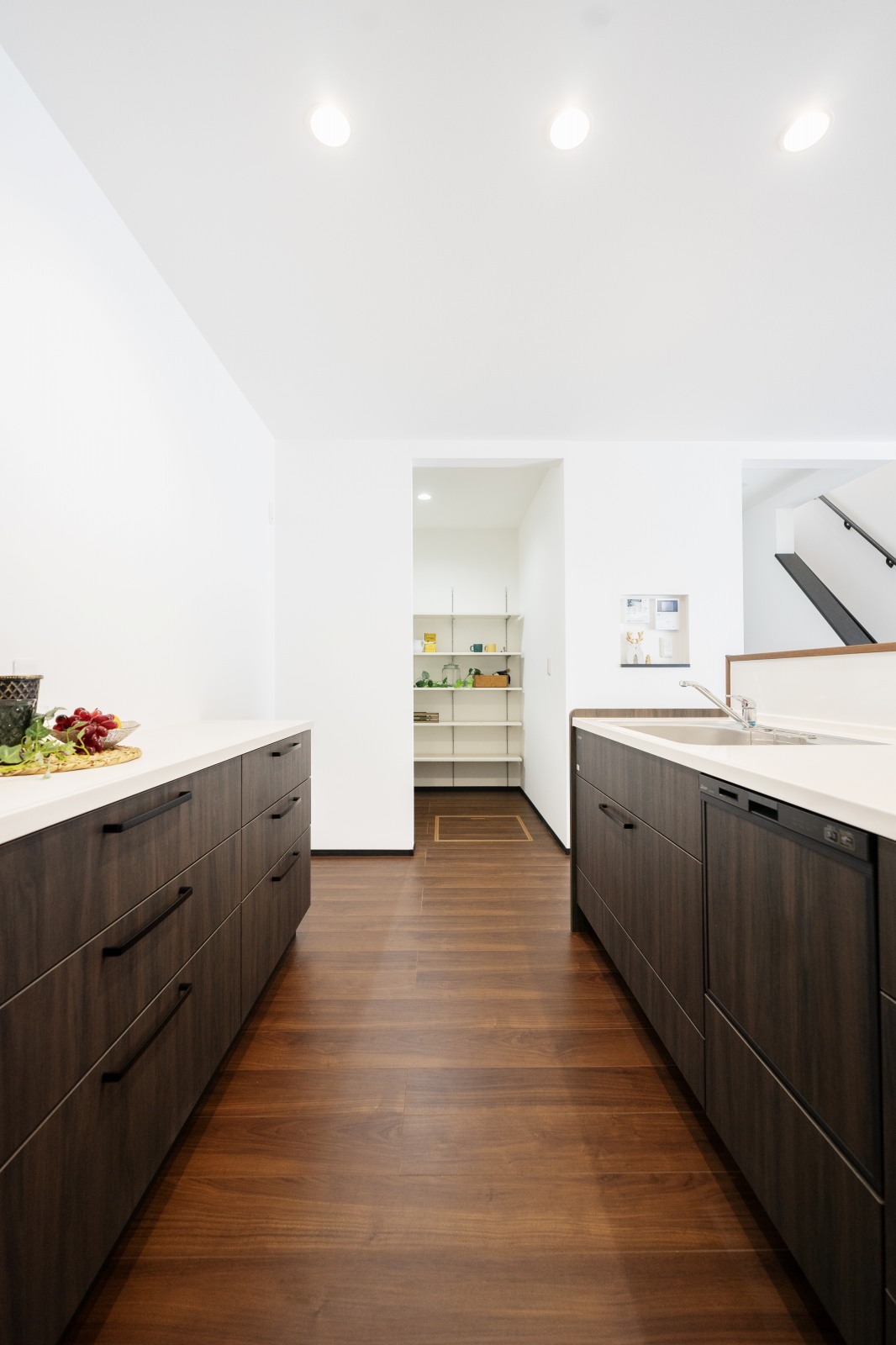 特大パントリー- キッチン近くには大きなパントリー!ホールには2か所も収納があって、室内がスッキリ片付きます!