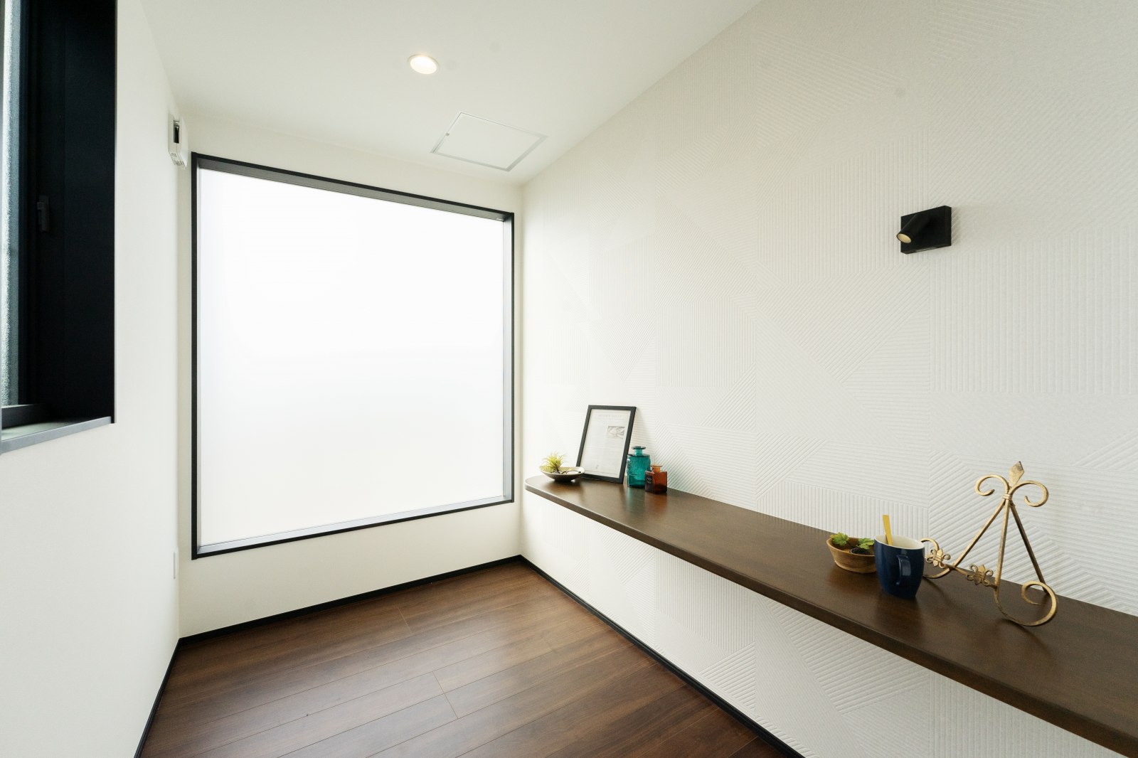 ワークスペース- 2階の階段近くには作業に集中できるワークスペース!リモートワークや宿題、家事などライフシーンごとに使い方様々!