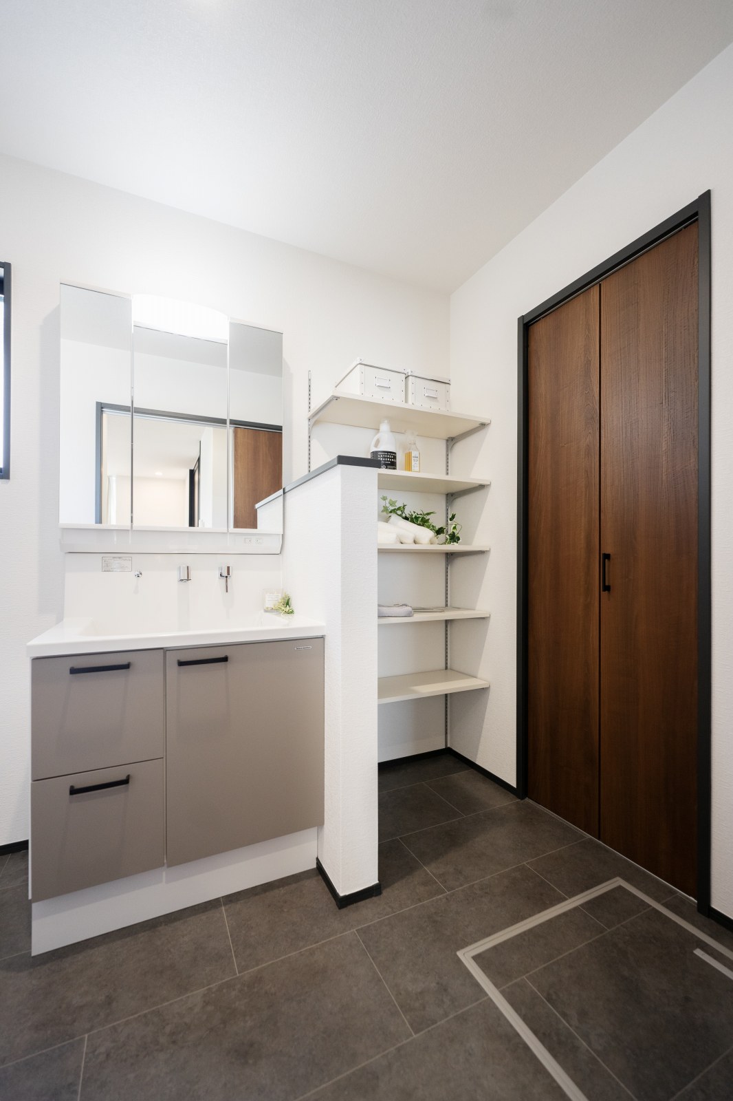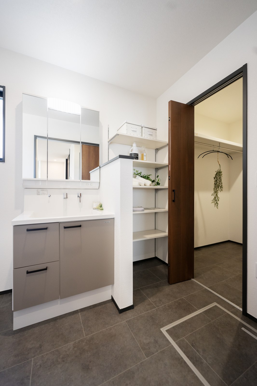 家事ラク動線- 洗濯機の近くは洗濯がラクになる間取り。洗濯物は脱衣室内の物干し金物で干したあと、となりのクローゼットにそのまま仕舞えます。