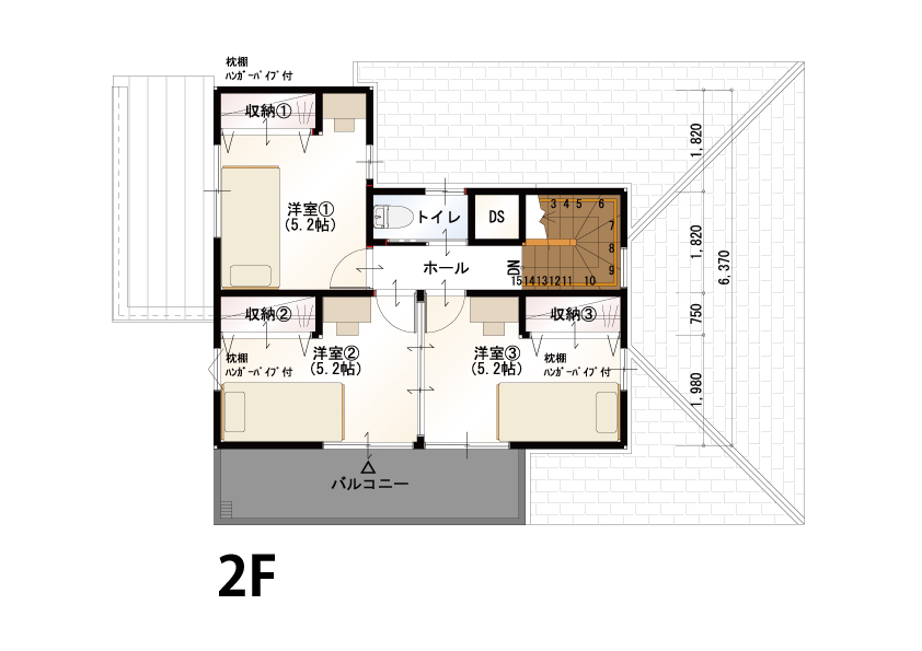 ①開放感のあるストレートLDK ②脱衣所と分けた洗面台 ③それぞれのお部屋から出られるバルコニー