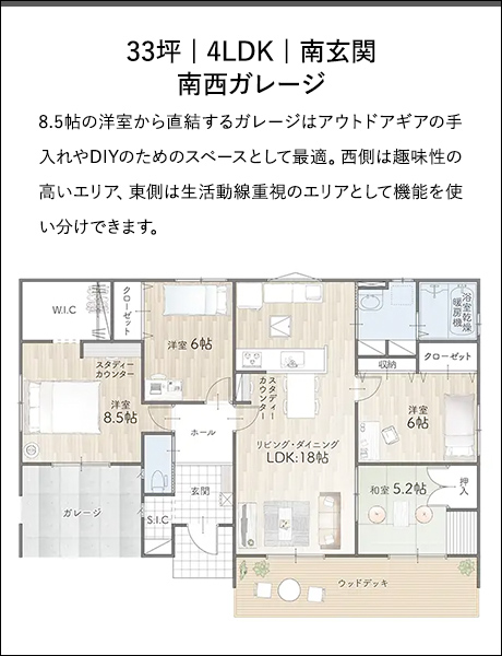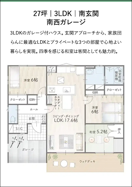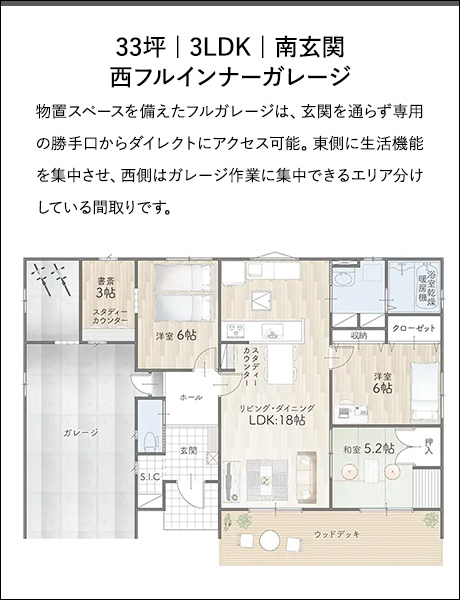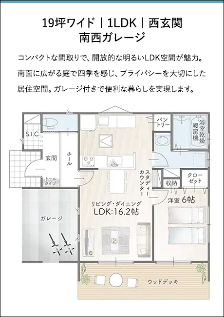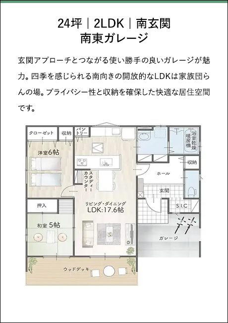 ガレージ付きの2LDKまたは3LDKプランから選べます。