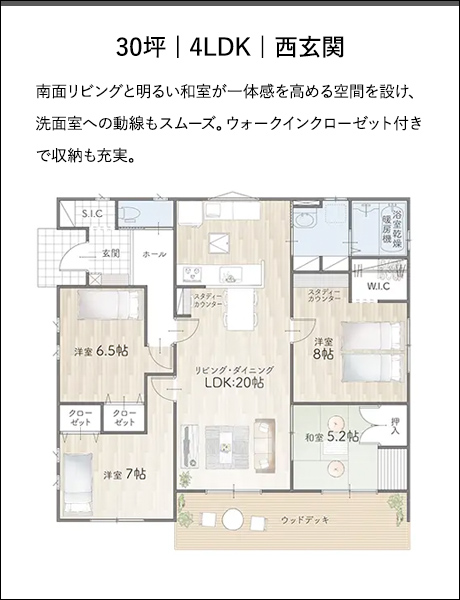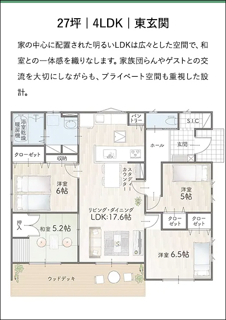 広々としたLDKとプライベートスペースを確保したコンパクト設計。