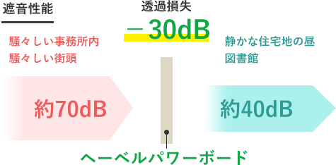 静かな住環境は、人にいつもやすらぎをあたえる。遮音性に優れた住まいは、やすらぎを守る住まい。パワーボードは騒音のストレスから暮らしを守ります。 -