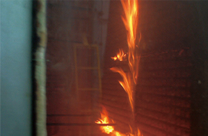耐久テスト - 外から15分以上ガスバーナーで炙った壁の内側を触っても大丈夫なほどの防火性。