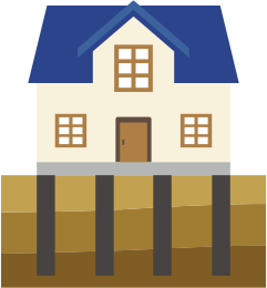 - 固い地盤までに支持杭として埋める。細い鋼管杭等は厳密には「地盤補強工事」として用いる。