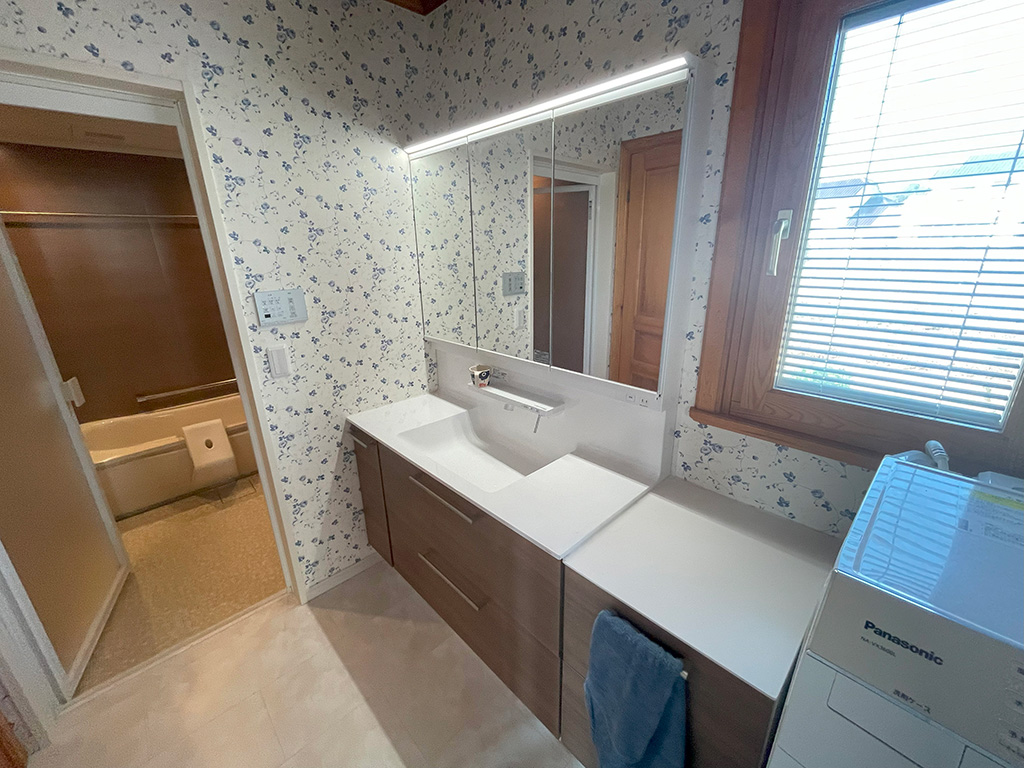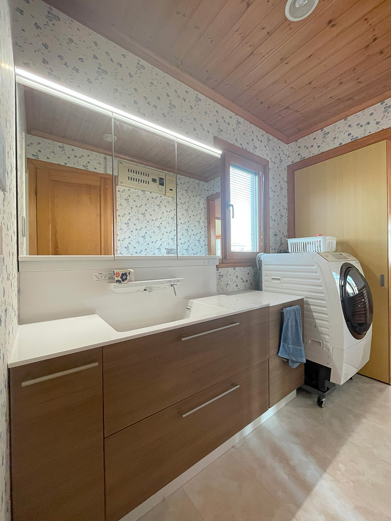 - UB、キッチン、洗面台、エコキュート、1階トイレ取替・2階トイレ新設・LDK廊下2階居室床張り・新規床暖・1階2階トイレ、LDK、洗面所、廊下クロス張替え・玄関戸取替・外部塗装・外構