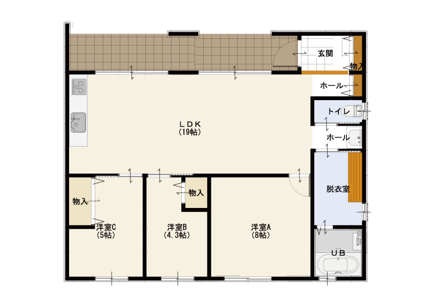 母と一緒に住むことを考え、歩行器で移動しても引っかからない、段差のない動線にしました。