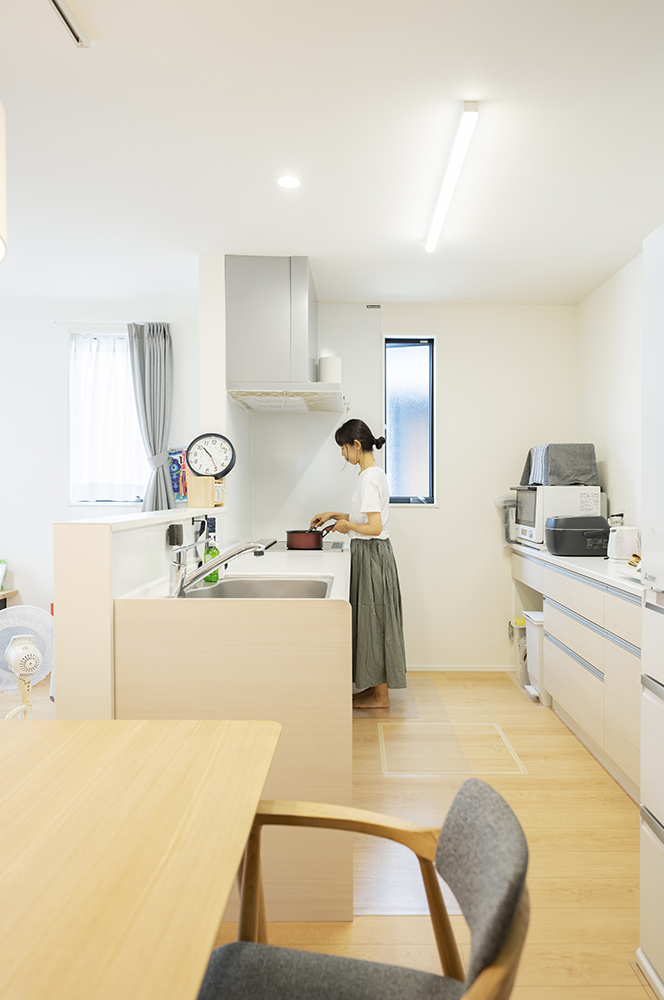 リビングの子供たちの様子を見ながら家事ができるようになったので安心ですね。