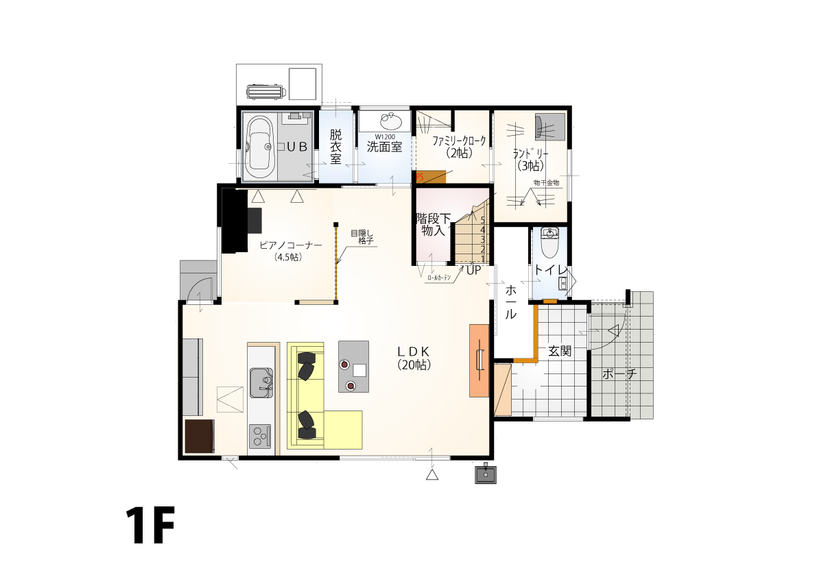間取りを決めるときに、自分たちの生活を一度見直して、生活の中で必要なもの・必要じゃないものを話し合って、なるべく必要なものは1階にまとめておいたんです。