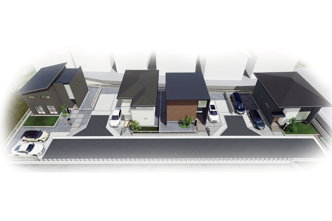 - ・全区画が南側道路に面しているため、分譲地全体が常に日当たり良好です。ここでは、明るく快適な生活が当たり前の日常となります。